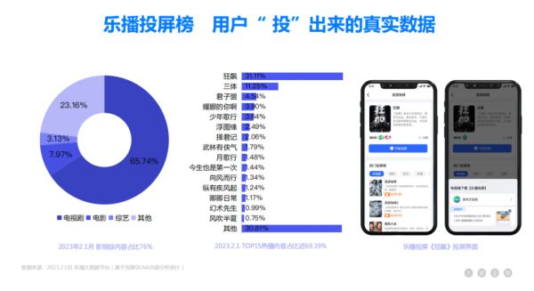 乐播投屏得益于与电视厂商、手机厂商、音视频APP等广泛合作,其用户终端覆盖已达到16亿,手机设备触达已达到10亿。由此带来的优势是,一方面乐播投屏的媒体资源更加丰富,如影视版权方&影视APP等视频内容覆盖率达到90%以上,可为用户带来海量丰富的投屏内容选择,另一方面基于用户真实选择投屏的大数据——“乐播投屏榜”,则可让内容消费的价值进一步凸显。