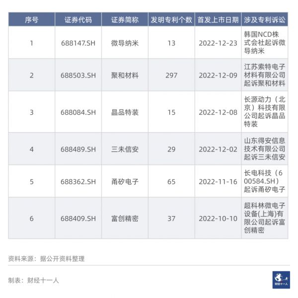 当然,并非存在专利诉讼就一定无法登陆科创板。财经十一人收集了科创板2022年四季度数据,发现在28家成功IPO的企业中,有6家涉及专利诉讼。
