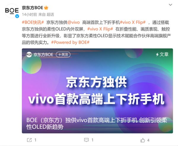 vivo首款小折叠屏由京东方独家提供屏幕 和X90同款