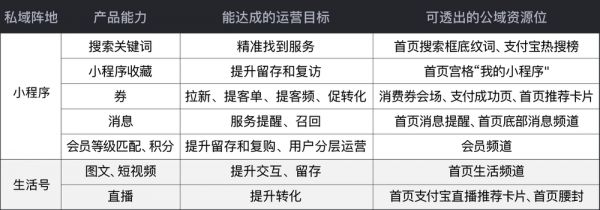 复盘支付宝整个平台生态来看,公私域势能有两个层面:一是流量定位,即帮助商家积累私域里各种各样的用户资产。比如消息、订阅用户,群粉丝等私域组件都是通过流量进一步将用户沉淀为私域资产,推动可持续运营;二是推荐,推荐产品以前由平台算法自主决策,放权给商家私域运营,则可以基于商品、券、会员权益丰富用户画像,让商家拥有更精准的用户触达能力及主动运营空间。
