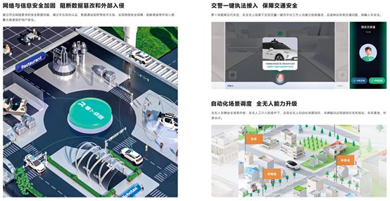 而另一方面,软硬件层面的全方位覆盖则为自动驾驶安全带来了全维度的保障,百度Apollo采用了在行业及全球范围领先的全无人车安全保障体系,通过全局指挥调度监控及远程5G云代驾等技术,高效配置车辆资源、实现多场景安全响应闭环。在全无人场景下还支持交警一键执法接入,迅速响应各类交通问题、保障人车安全。