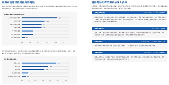 基于可靠的产品及服务质量,萝卜快跑在用户群体中也获得了良好的口碑。在“促使用户选择萝卜快跑的因素”调研中,“满足出行需求”及“科技感十足”占比较多,萝卜快跑已成为用户心中“科技出行”的代表。而用户的口口相传,也为萝卜出行进一步拓宽了潜在客群,例如在上海市嘉定区,有一位用户在自己使用过萝卜快跑的出行服务后认为非常方便,并推广给家乡人民,在2022全年带来了裂变新客520人。