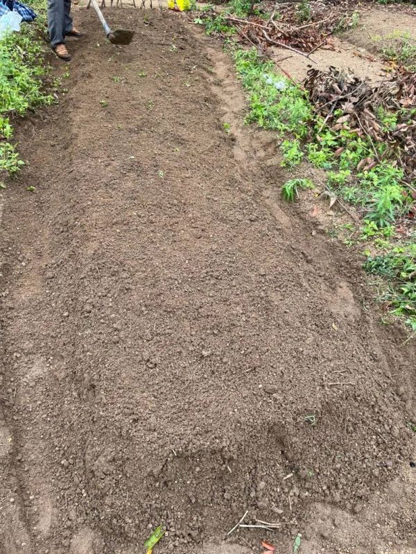 拿上菜苗去种地的那天,遇见一对夫妻从地里走出来,看见我笨拙地翻地,大姐穿一双不方便耕种的布鞋,还是接过我手里的锄头,从头帮我翻,大哥在旁边看了一会儿,也加入了帮忙的阵营。他们一边利索地动作一边给我讲,“茄子可以种得密一点,番茄长得茂密一行种两棵就够了,至于黄瓜,到时候记得牵藤插架绑蔓……”帮完忙,他们拍拍手,倒倒鞋子里的土,笑着走了。