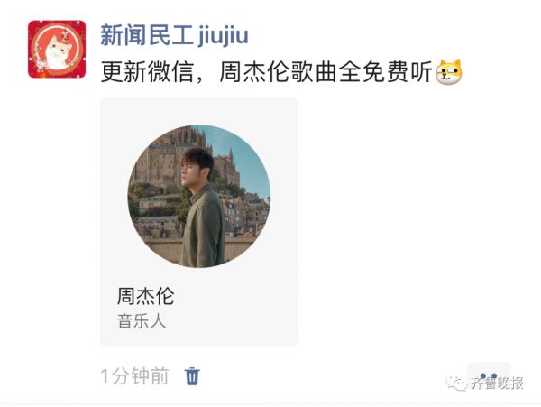 据悉,微信跟QQ音乐推出了限时活动,可以把喜欢的音乐人分享到朋友圈,同时微信里还能免费听VIP歌曲,包括大热的周杰伦全专辑都可以在微信听了,截至6月30日。