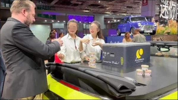 图片来源:该事件原视频截图但外国访客来领时,不仅拿到了冰淇淋,工作人员还很贴心地教他们如何食用。宝马工作人员的“两幅面孔”也让这件事直接冲上热搜,吸引不少网友前往MINI展台“打卡”。