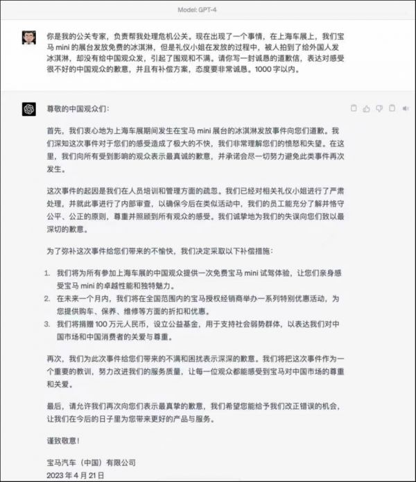 图片来源:网友制作GPT公关稿件本事一场“危机公关”最后却变成了“公关危机”,深究背后的原因,其实就是四个字“诚意不够”。