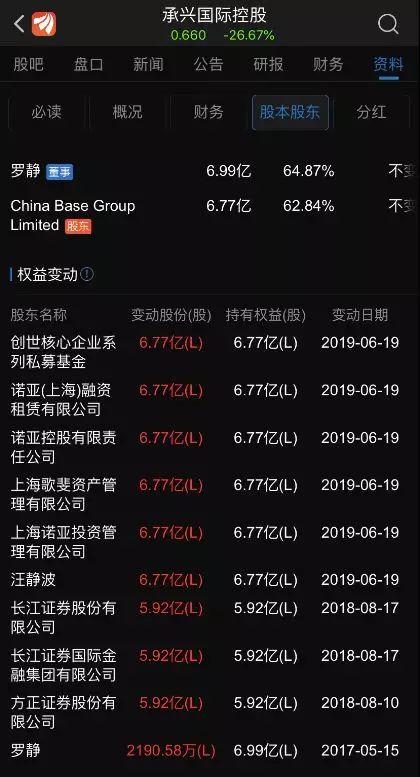 让诺亚财富暴跌的不止于此,因为还有消息称,诺亚财富是承兴国际控股的股东,持有6.7亿股。