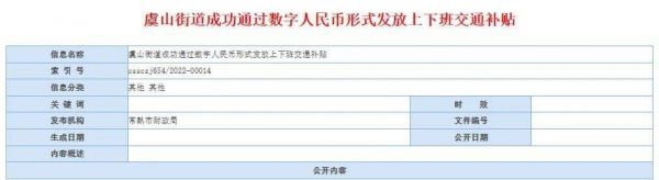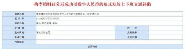 此前,常熟部分区域的在编工作人员补贴发放,已由传统的发放至工资卡改为发放至数字钱包。据常熟市人民政府官网公开信息,从去年10月起,虞山街道公务员(参公)、事业人员和梅李镇在编工作人员,开始通过数字人民币形式发放工资中的上下班交通补贴。