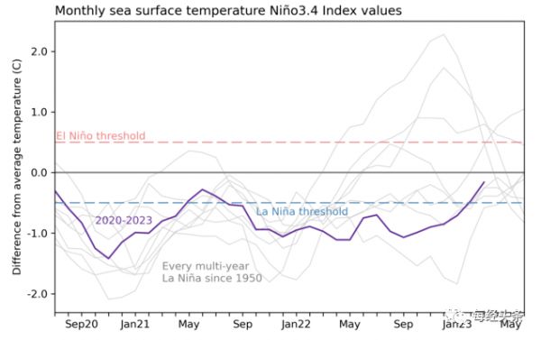不过需要指出的是,由于气候变化加剧了极端高温,即使在没有厄尔尼诺现象的年份,极端温度仍然会出现。