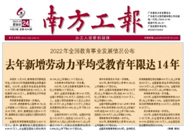 我国新增劳动力平均受教育年限达14年。图/南方工报