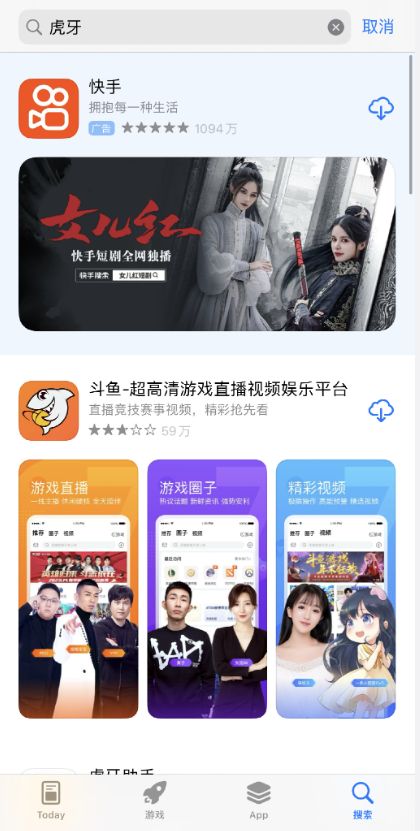 IT之家 4 月 23 日消息,今日有网友发现在苹果 App Store 中已无法搜索到虎牙直播 App,IT之家搜索发现情况属实,搜索“虎牙”只能搜到快手、斗鱼等竞品。并且通过虎牙直播官网点击下载,则出现了“App 不可用,目前你所在的国家或地区尚不提供此 App”的弹窗。