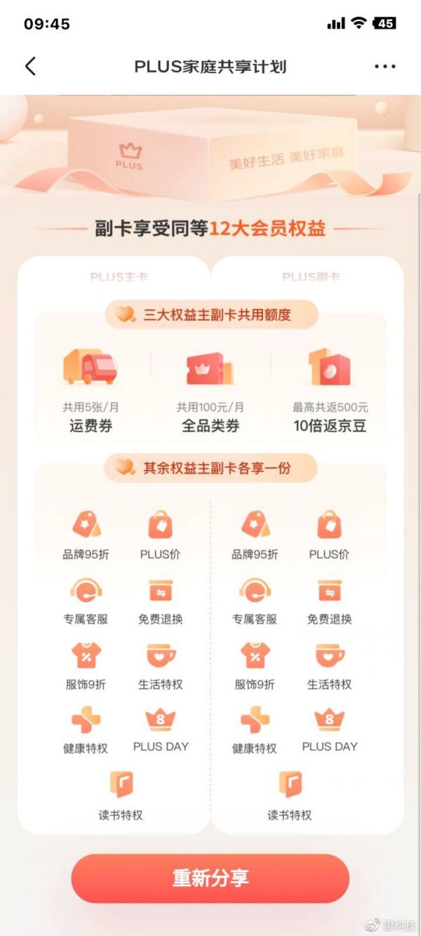 死磕竞争对手?京东Plus家庭会员曝光,权益可分享