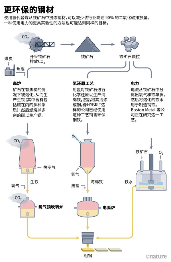 能源分析师表示,由于钢铁厂还将存在至少几十年,如果各国要实现巴黎协议的目标,钢铁行业应立即停止建造新的高炉,并开始用氢直接还原炉取而代之。即使最开始的时候大多数的氢来源还是天然气,在未来三十年内,随着氢供应的增加,这些氢炉还是能够逐渐减少其碳足迹。