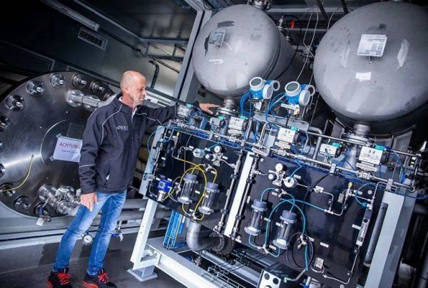 电解槽就是一个小型的氢能工厂。图为提供绿氢的Apex能源公司的工厂经理Guido König。图片来源:Jens Büttner / dpa-Zentralbild / Picture Alliance