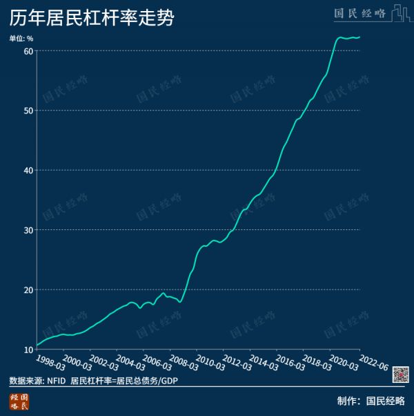 图/我国居民杠杆率从18%一路上行到70%