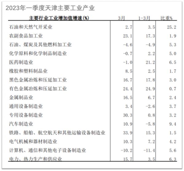 今年一季度,天津石油和天然气开采业、石油加工业及化工产业,占规上工业增加值的比重合计高达35.5%。