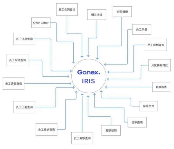 比如Gonex的AI全球HR合规引擎IRIS,HR可以每天基于对全球HR法律法规以及全球各行各业HR最佳实践进行检索,并对自己的任务进行分解和实现。