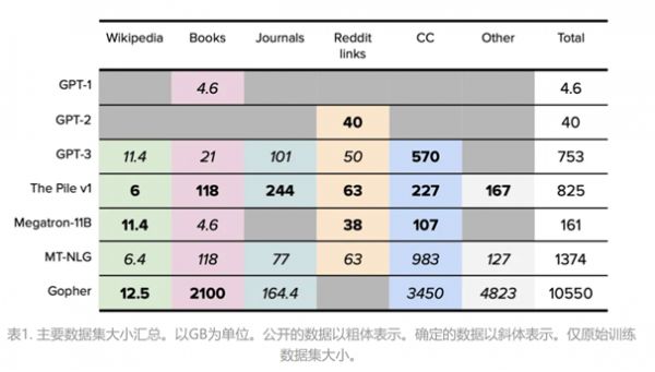 [2]Alan D. Thompson, What’s in my AI? A Comprehensive Analysis of Datasets Used to Train GPT-1, GPT-2, GPT-3, GPT-NeoX-20B, Megatron-11B, MT-NLG, and Gopher, https://lifearchitect.ai/whats-in-my-ai/, March 2022.