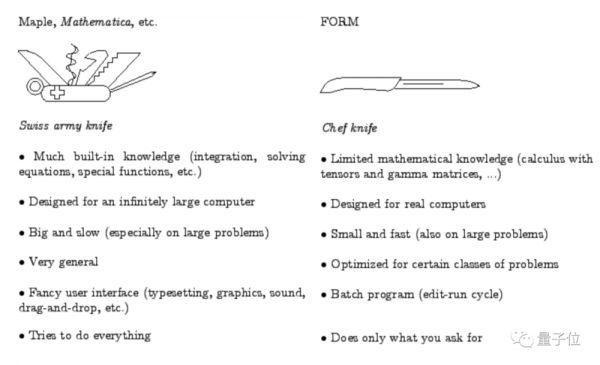 开发FORM之初,乔斯使用的是FORTRAN语言(也是FORM名字的重要来源),这种语言很擅长“搞数学”。