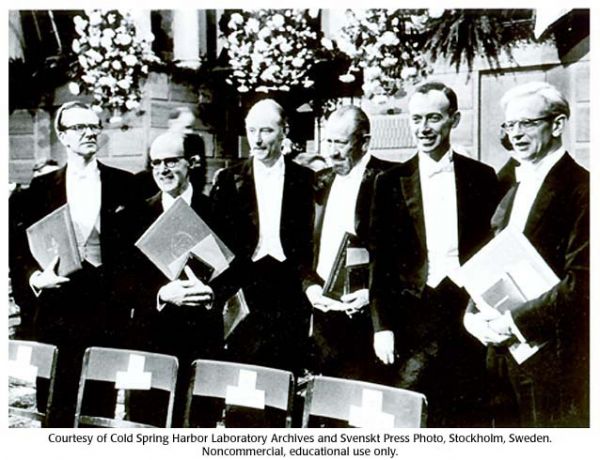 1962年12月10日,瑞典斯德尔歌尔摩,三位科学家威尔金斯(Maurice Hugh Wilkins)、克里克(Francis Crick)和沃森(James Watson)依次上台,领取诺贝尔生理或医学奖,这一科学界最高荣誉。他们因“发现核酸的分子结构及其对生物中信息传递的重要性”而获奖。
