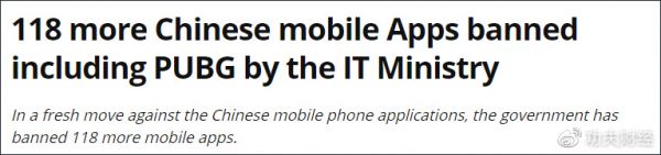 因为印度在2020年中印边境冲突后,以“国家安全”为由禁用包括抖音海外版TikTok、茄子快传和UC浏览器等在印度十分流行的59款中国App,到2020年9月2日宣布禁用包括支付宝、百度、优酷视频等118款中国APP,再到2020年4月封禁54款中国APP。
