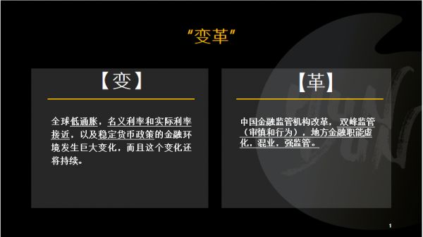 中国的金融监管机构改革将走向“双峰监管”,将审慎监管与行为监管分开。金融消费行为将被纳入到金融监管的范畴里面,地方金融职能虚化,并且同时采用混业和强监管的方式。在这种情况底下,我们对于全球资本市场的预期、对于企业的估值都需要有重新的认识。