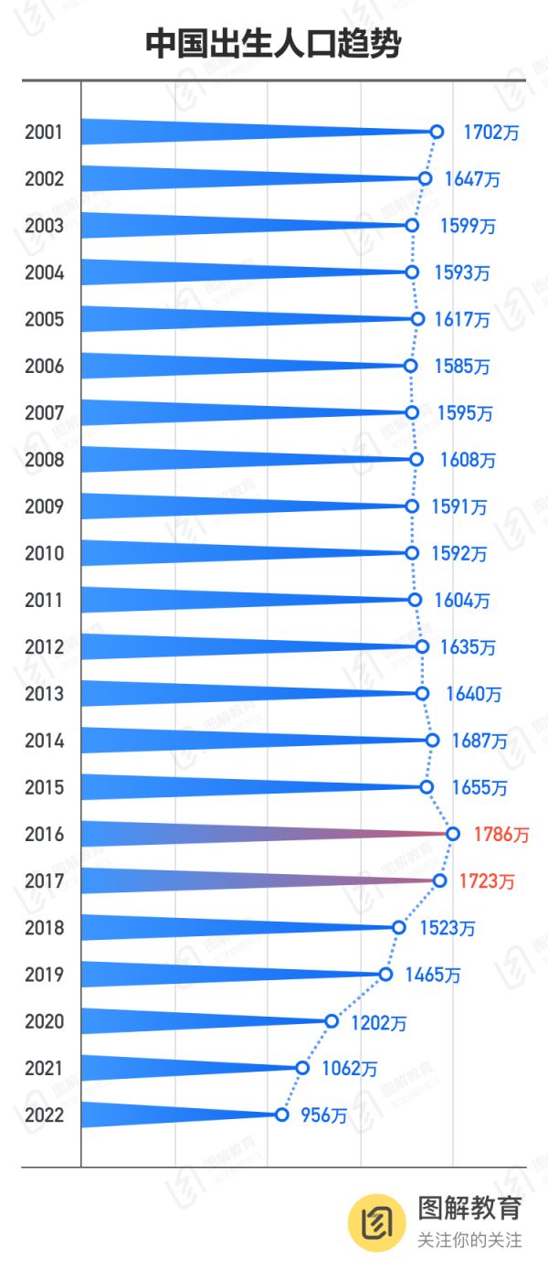 当然,有人担忧,适龄孩子这两年增加,过几年又大幅减少,那么多学位到时怎么办?2018年全国出生人口迅速滑落至1523万人,2022年跌破1000万人。