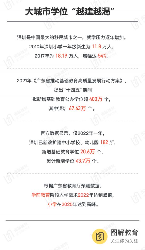 然而,随着深圳人口处于快速增长期,打拼的年轻人也进入结婚生子的人生阶段,深圳这座城市的学龄人口正在大幅增加。