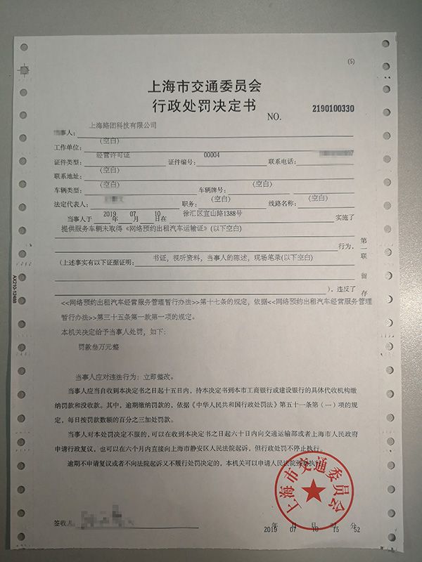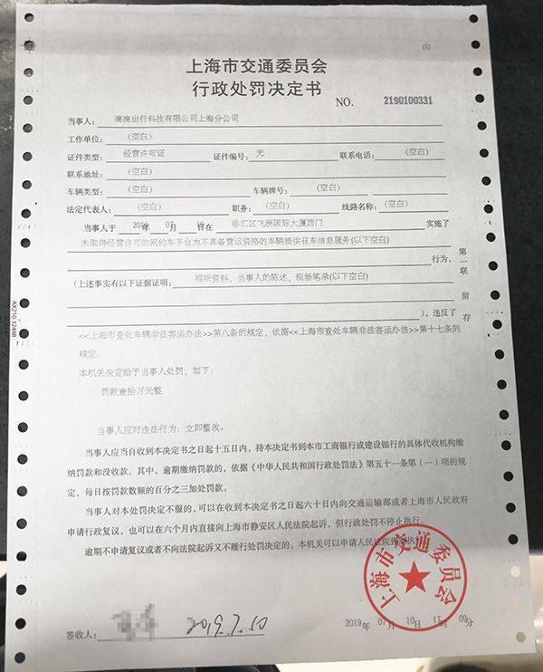 滴滴在上海已领到100张罚单,累计罚款1000万元