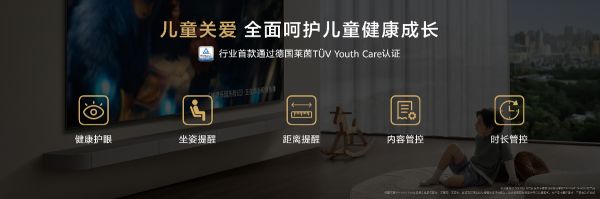 此外,智慧屏 S3 Pro作为家庭中心影音和信息融合设备,极为注重消费者在家居场景中愈加丰富个性的需求。为此,华为智慧屏 S3 Pro还配置了儿童关爱、家庭畅连和超级娱乐三大版块的智慧功能,革新用户家庭客厅智慧娱乐体验。考虑到儿童自制力弱,长时间观看电视时,距离过近或者坐姿不正确很容易导致孩子眼睛近视或者骨骼发育不正确。作为行业内首款通过莱茵Youth Care认证的电视,华为智慧屏 S3 Pro还专设了儿童模式。在此模式下,智慧屏依托AI慧眼的精准识别能力,会从坐姿提醒、距离提醒、时长管控、内容管控和健康护眼五个方面,全面呵护儿童健康成长。例如当孩子观影距离过近或坐姿不正确时,AI慧眼可及时实现检测并发出弹窗提醒、暂停视频播放,直至孩子坐端正或恢复正常距离。