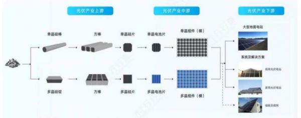 这里要提及光伏产业链。一个晶硅光伏组件的诞生,以硅料为原材料,经过切割后形成硅片,做好的硅片要经过多重工序形成电池片,最后用光伏玻璃、逆变器等一些备件,组件封装而成。