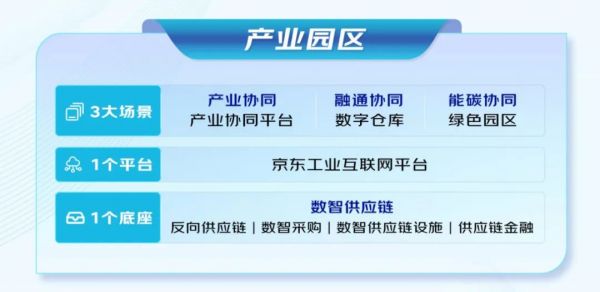 可以理解为,京东云产业园区的服务模型在产业协同平台、数字仓库、绿色园区这三个产品背后,更有京东强大的技术产品底层能力和基础设施积累,这些能力从真实的供应链中来,最终又在真实的产业链中进行价值创造,成为区域经济发展最小单元的强力推手。