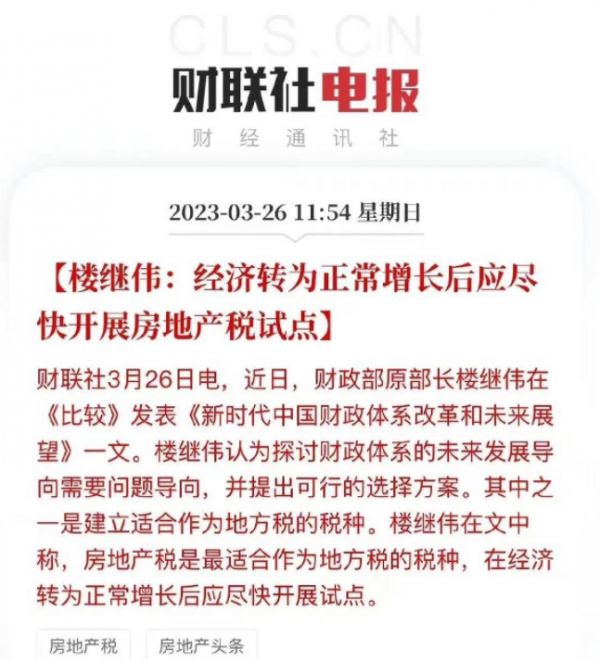 关键的一点就是提出,经济转为正常增长后要尽快开展房地产税试点。