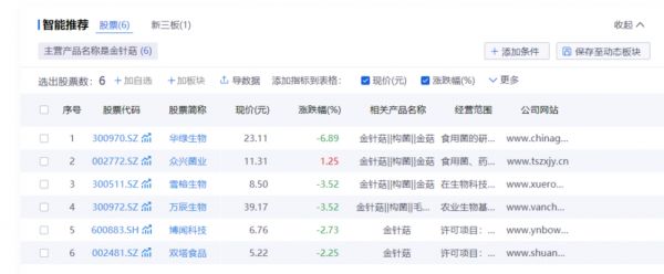 据同花顺iFinD数据统计,目前A股市场约有6家主营金针菇的上市公司。截至4月25日收盘,众兴菌业、雪榕生物市值超40亿元,万辰生物市值超60亿元。