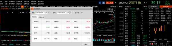 万辰生物、雪榕生物、众兴菌业、华绿生物自今年3月至今股价都有不同程度的上涨。其中,金针菇概念龙头股万辰生物自3月1日至今已累计上涨94.68%。