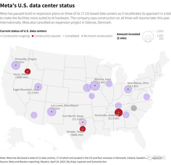 但这次改革,已经耗费了大量的人力物力。据悉,改革使Meta每季度的资本支出增加了约40亿美元,几乎是2021年支出的两倍。而且Meta此前建设4个数据中心的计划,也因此暂停或取消。