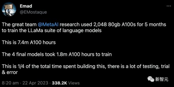 目前,耗时5个月训练出的“Meta版ChatGPT”LLaMa,用的是2048个80GB显存的A100。