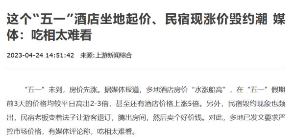 游客“五一”住宿遭退单,先退后涨?
