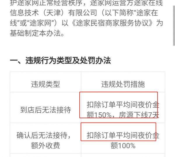 根据途家网的规定,如果民宿店主确认订单后无法接待或额外收费,将被扣除1倍的房费;如果消费者到店后无法接待,将被扣除1.5倍的房费。比起5倍甚至更高的涨幅,罚款对于房东来说只是很小的数额。
