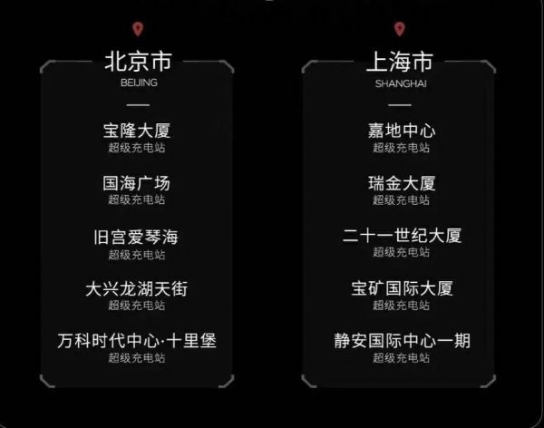 第一批开放10座超级充电站,面向37款非特斯拉车型;120座目的地充电站,覆盖25个省/直辖市。以后这份名单的范围会不断扩大。