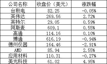美股中的主要芯片股表现如下: