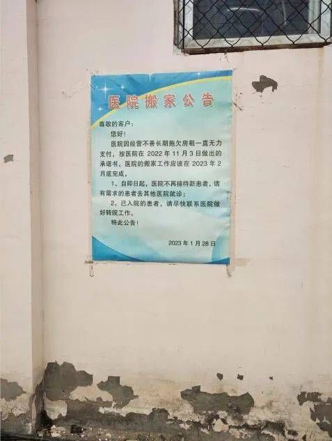 经济观察报记者获取的百子湾和美落款2023年1月28日的一份公告显示:因经营不善,长期拖欠房租一直无力支付,按医院在2022年11月3日作出的承诺书,搬家工作应该在2023年2月底完成。自即日起,医院不再接待新患者,已入院的患者请尽快联系转院。