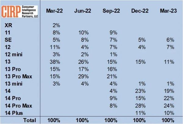 值得注意的是,1 月至 3 月是苹果 iPhone 14 系列上市的第二个完整季度。CIRP 表示:“这些数字对于了解 Apple 的业绩非常重要,我们每个季度都会重新审视这些数字”。