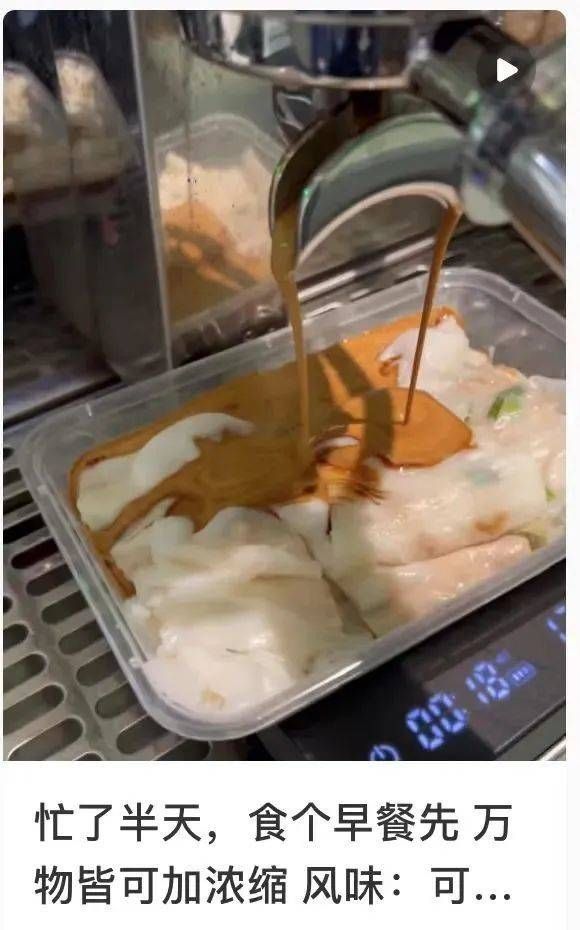 甚至,近期网络上还有各种以“猎奇”的方式博得大众流量的怪状层出不穷,每过一段时间总有一些匪夷所思的搭配冒泡,比如什么“浓缩生蚝”“浓缩肠粉”“三文鱼美式”等等。