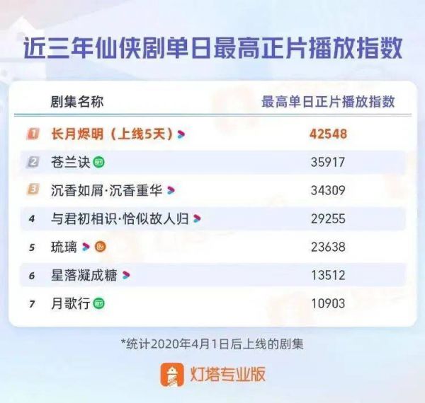 这7部仙侠剧的单日最高播正片播放指数均破万,而且除了年末开播的“跨年剧集”《月歌行》外,2022年的《苍兰诀》《沉香如屑·沉香重华》《与君初相识·恰似故人归》三部仙侠剧全都进入灯塔年度全网剧集市占排行总榜前十。
