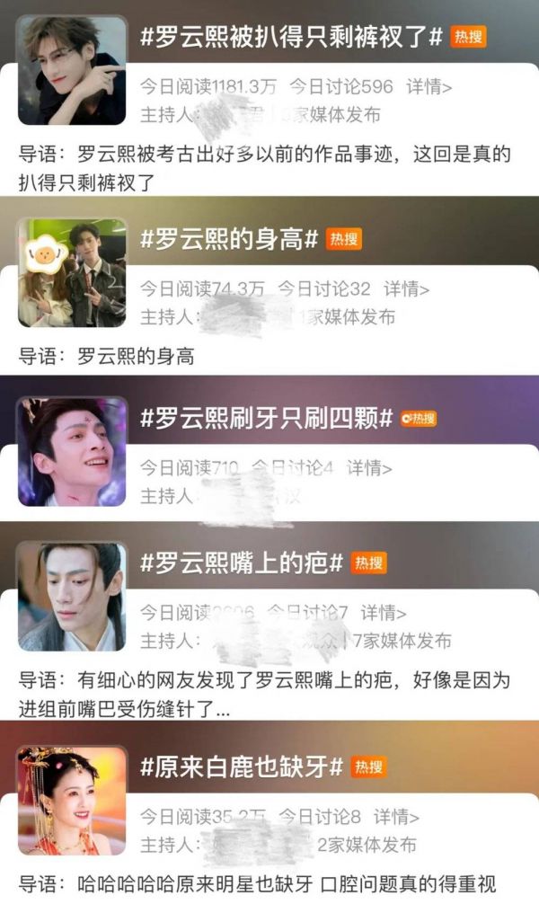 超高清画质为观众的逐帧“审判”提供了“便利”。网友们拿着放大镜,从罗云熙的牙、嘴上的疤,一路“审判”到了罗云熙的多层双眼皮、耳朵、鼻子、舌苔、身高。4月17日,#罗云熙被扒得只剩裤衩了#登上微博热搜。