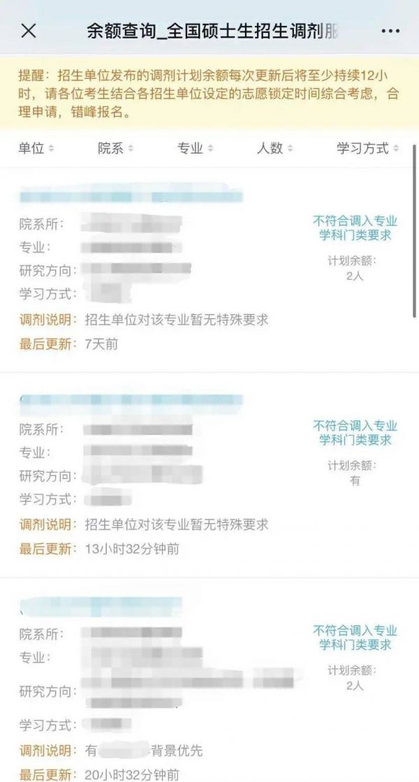 @咩咩mie-在调剂期间的信息检索频率比平时高出很多。他每隔几小时就要登录系统,刷出新出现的院校,如果合适,再进一步联系,“一旦进入调剂,非常耗精力、耗情绪。”