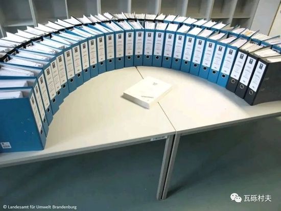 特斯拉柏林超级工厂开工前,所获的环境批文(中,536页),及特斯拉为此提交的所有文档(周围)。2022年3月