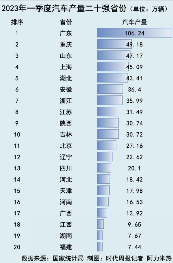 一季度谁最能造?广东汽车产量领跑全国,山东反超上海