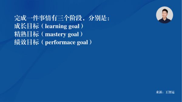 但是,有被简化的可能。斯坦福大学心理学教授戴克斯特·海克斯认为,完成一件事情有三个阶段,分别是:成长目标(learning goal)、和精熟目标(mastery goal)、绩效目标(performace goal)。